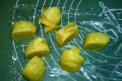 11.冻硬的面团分成七等份。