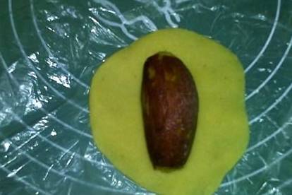 12.按扁,放入红薯。