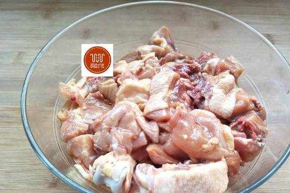 1、鸡腿洗净用刀斩成小块。