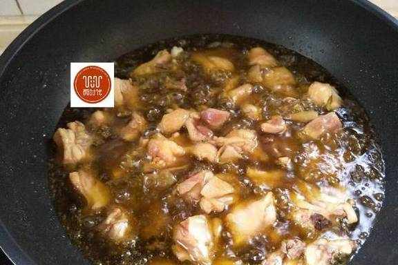 6、加入炸好的鸡块炒匀。