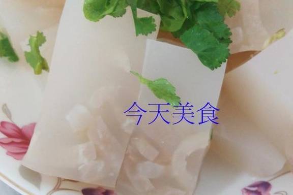 【食材】猪皮500克,盐少许,香菜,大蒜,酱油,白糖,蚝油各适量