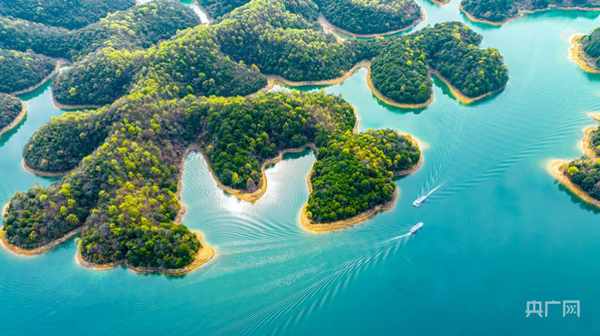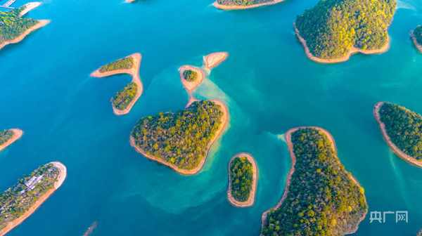 春天的庐山西海碧波万顷,绿岛拥翠,犹如颗颗翡翠落玉盘(央广网发 黄杰 摄)