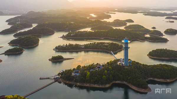 在夕阳的余晖下,庐山西海如同一幅山水间的绝美画卷(央广网发 黄杰 摄)