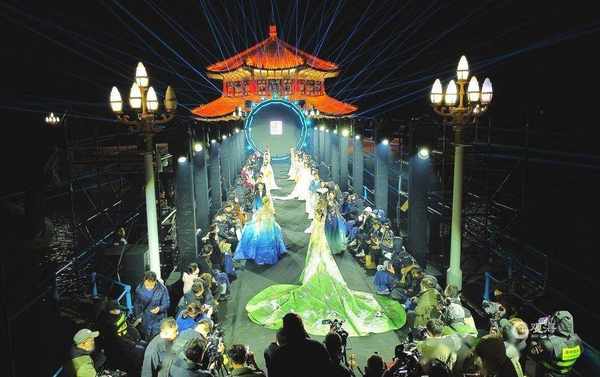 身着时尚华服的模特在百年栈桥上走秀。邢志峰 摄