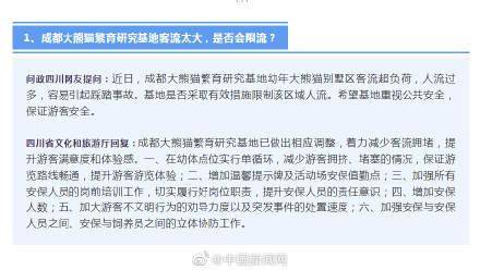 近日,问政四川网友提问:成都大熊猫繁育研究基地幼年大熊猫别墅区客流超负荷,人流过多,容易引起踩踏事故。基地是否采取有效措施限制该区域人流。对此,四川省文化和旅游厅回复:成都大熊猫繁育研究基地已做出相应调整。一、在幼体点位实行单循环,减少游客拥挤、堵塞的情况,保证游览路线畅通,提升游客游览体验;二、增加温馨提示牌及活动场安保值勤点;三、加强所有安保人员的岗前培训工作,切实履行好岗位职责,提升安保人员的责任意识;四、增加安保人数;五、加大游客不文明行为的劝导力度以及突发事件的处置速度;六、加强安保与安保人员之间、安保与饲养员之间的立体协防工作。(川观新闻)