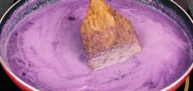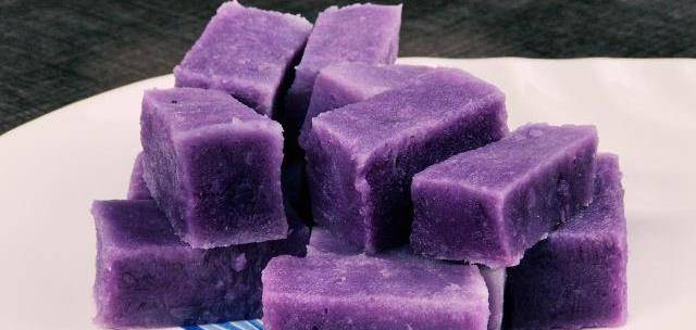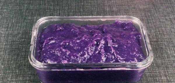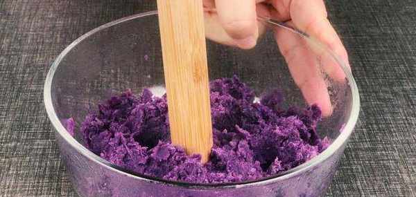 1.紫薯蒸熟后捣碎成泥状,捣碎得越细腻越好,这样做出来的紫薯凉糕口感会更好,也会更加细腻。