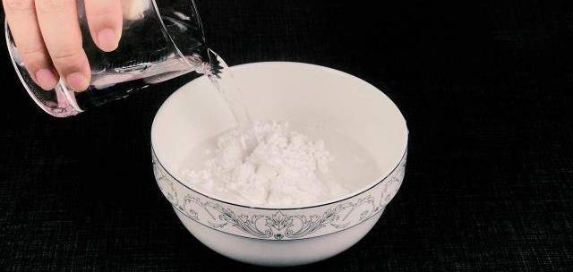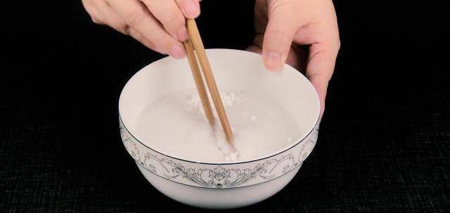 5.100克豌豆淀粉用200克的清水搅拌,耐心的搅拌到没有干面粉就可以了。