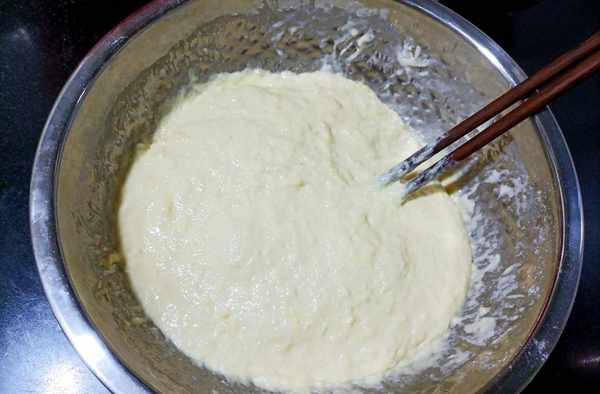 准备一碗清水,一边倒水一边搅拌,搅拌成这样稠稠的面糊。