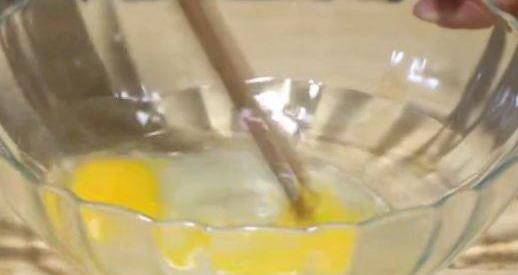 做法:先把鸡蛋打进无水无油的碗里,然后加入白糖和植物油,搅拌均匀。