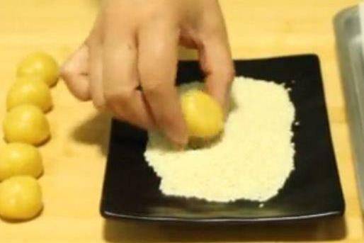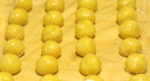 然后取小块面团用手搓成小球,依次全部做好。