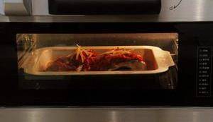 将加入调料的鱼头再次入烤箱,继续高压蒸5分钟。