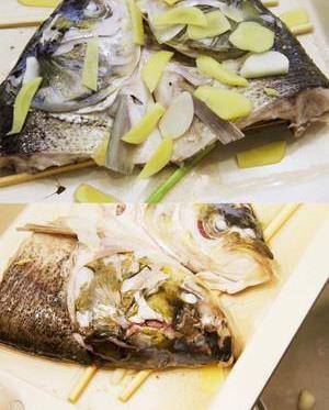 清洗鱼头的时候里面黑色的东西一定要清干净,否则会很腥。架上筷子的原理就是让底下的鱼有空气流通,是真的蒸熟而不是焖熟。底下铺上姜跟葱白是可以让鱼肉去腥保持鲜嫩感。前几分蒸出来的事血水,如果不到口感不够清爽,汤汁也是偏浑浊的。最后的生抽一定要是在淋完热油后再淋上,否则生抽不会散开,是直接侵入在你倒的那块位置。可以根据自己的口感加入适当的豆豉。葱白就是一条葱不要绿色部分。