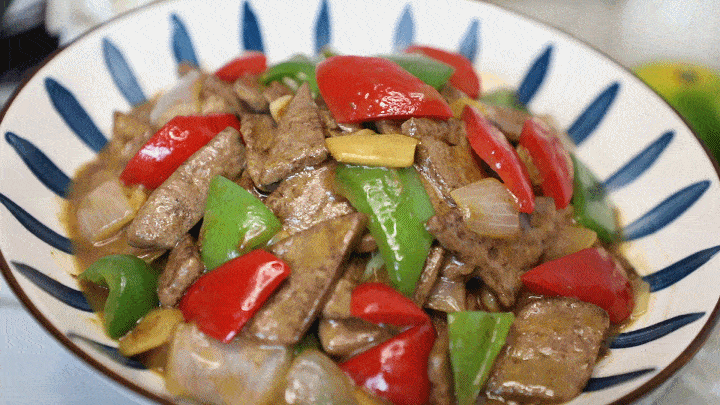 10、将酱汁倒入锅内,猪肝翻炒均匀就可以出锅了。