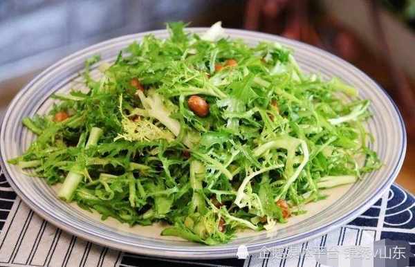 材料:苦菊1棵,大蒜3瓣,花生仁1把,欣和轻盐酱油15毫升,米醋10毫升,白糖5克,盐2克,芝麻油15毫升