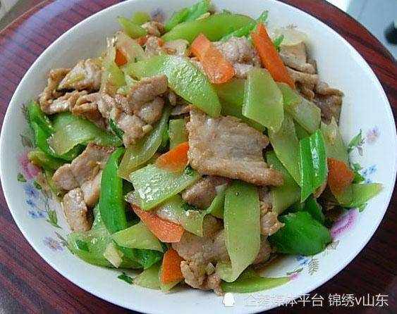 材料:莴笋、瘦猪肉、姜蒜、盐、味精、生抽、料酒、淀粉水