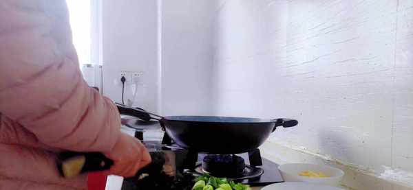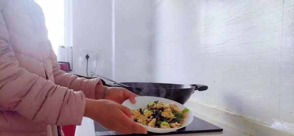 步骤三:重新开火,锅里放少许的食用油,先把蒜头去皮、小米辣掰段放锅里炒香之后,再把切小段的小青菜放进去反复的翻炒(记得先把菜梗先炒一小会之后再放小青菜的叶子进去翻炒,这样出锅的口感会比较好),青菜稍微变色之后把炒过的鸡蛋放进去一起翻炒,翻炒的同时记得加入少许的食用盐调味。