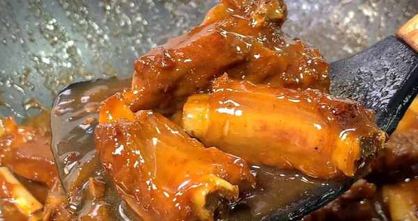 6、炖了45分钟之后呢,开大火开始收汁,在收汁的过程当中,加入适量的食盐以及鸡精进行翻炒,直到把汤汁烧至浓稠就可以出锅了。