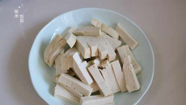 1,卤水老豆腐一块,切成粗条。随便切片或者切小块也可以。