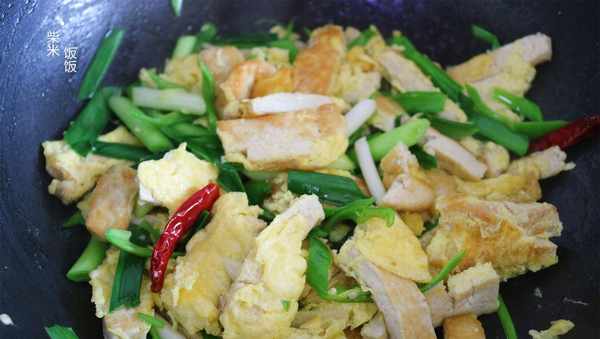 【食材】豆腐、鸡蛋、蒜苗、青椒、干辣椒、姜、蒜、盐