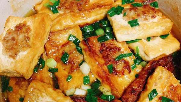 2、豆腐分成小块,中间用勺子挖一个洞,尽量挖深一点这样可以多放一点馅。