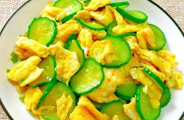 4、起锅烧油,加入葱花爆香,倒入青瓜翻炒几下,加入生抽、食盐翻炒,最后倒入鸡蛋翻炒均匀即可。
