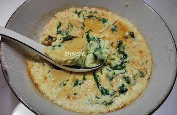 蒸好后的蛋羹加入适量的酱油,摇动一下,使其都能均匀地分布在蛋羹上。用勺子将其切成块,然后就可以食用啦。鲜美美滑,气质超棒,这样做,出锅都抢着吃。