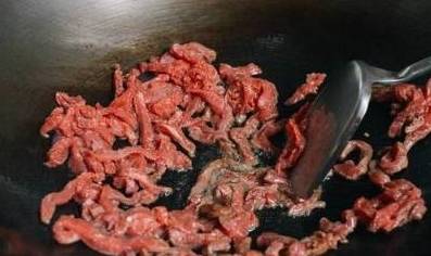 2.锅里放油,倒入牛肉,翻炒,盛出来备用。