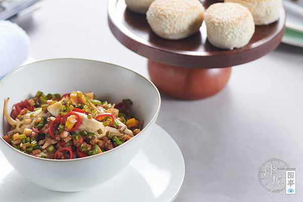 腌笃鲜,是江南吴越特色菜肴,有冬笋、香菇、莴笋、咸肉,“老百姓在家里做,呈现的方式是一道炖菜。”张玉召说,厨师的职业病,就是创新,“我就想着看看能不能给他把这所有的食材全部切成粒,做成狮子头。无论是口感,还是卖相都比之前的好。”
