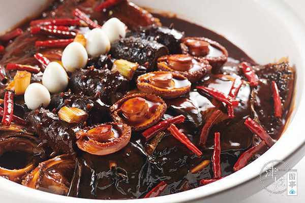 如今,张玉召的招牌菜——鱼头佛跳墙就是几经改良后成为每桌食客必点的“爆款”,“南方人吃佛跳墙是酱香口,味甜不辣,而北方有一道葱烧鱼头,我就想结合起来。”在体现菜肴的咸香同时,加入炸制酥脆的火红辣椒,既能满足北方人喜欢的浓郁口感,又裹挟着咸甜的麻辣香劲,一锅来自天南海北的食材滋味融合,就像天津这个城市一样,包容大度,热情豪迈。