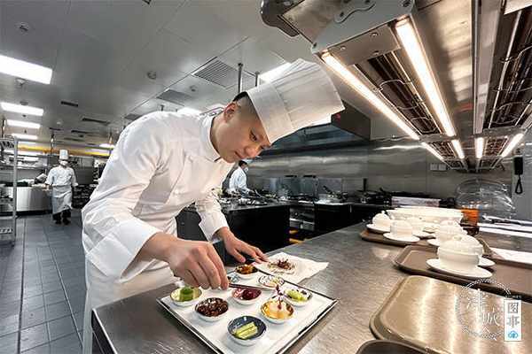 《论语》有云:食不厌精,脍不厌细,各色美食和而不同,菜系的形成并非一日之功,美食之间亦是可以相互借鉴和学习的。“厨师要做的更多是融汇与融合,把别人不知道的推介出去,把特色的引进来,更好地适应当地习惯。”那些年里,他在大大小小的交流比赛中取长补短,“摆盘很讲究技巧,不仅需要找准黄金点位,还要巧妙运用色彩搭配,才能给人以灵动的美感。”这是十年前张玉召的思考,也是现在他常常对新入厨师们讲的,每一道菜被做出来,厨师们要尊重,尊重它背后被赋予的价值。