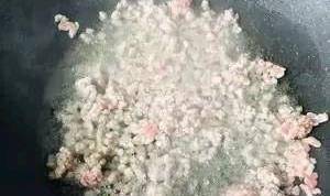 3、接着锅内加入清水两勺,水开放入茄子,焯水十秒后倒出(这一步是为了去除茄子中油温),焯水时间不要太长,会把茄子炒碎