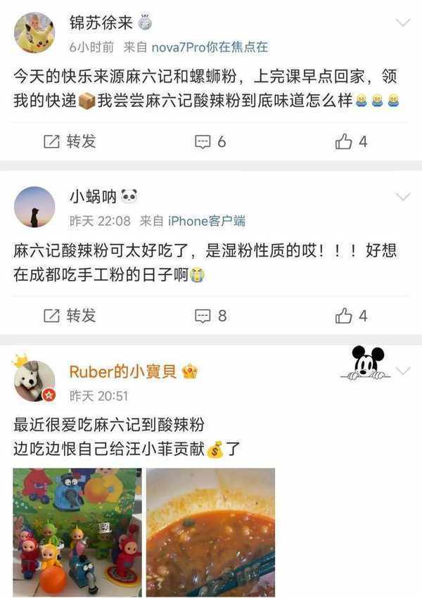 自从张兰和汪小菲一家直播带货后,主打产品就是自家品牌——麻六记的酸辣粉。