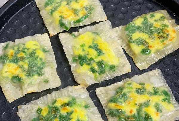 3、这样做出来的菜盒,外脆内软,细腻可口。一口下去,鲜嫩多汁,格外美味。以后家里还有剩下的饺子和馄饨皮。像这样对待他们。它们受到所有年龄段的成人和儿童的喜爱。