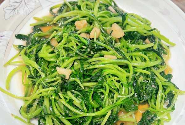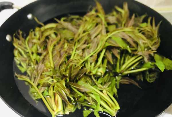 1.准备一把新鲜的珍珠芽。越新鲜越好,采摘时颜色微红,焯水后变绿。豆芽含有亚硝酸盐,宜焯水后食用。将水烧开,将嫩芽焯水约一分钟,取出并用冷水冲洗以检查水分。