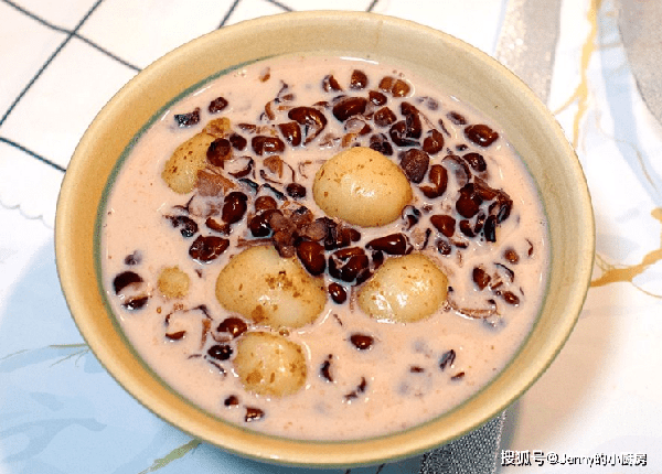 最后将红豆、小丸子、牛奶、冰糖放在一起,加热到冰糖化开,就可以盛出来食用了。