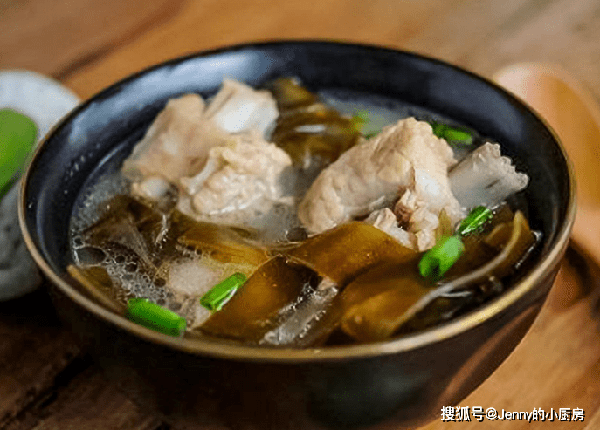 海带提前泡发,泡好后洗净,再切成小块。一个小时后,去掉葱结,放入海带,再继续炖十分钟。