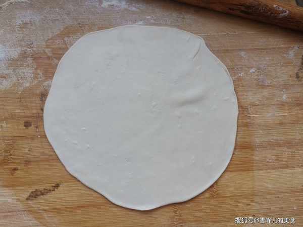 第五步:面团醒好了,分割成小剂子,按扁成一个圆饼状擀成薄薄的面皮,擀的越薄越好。