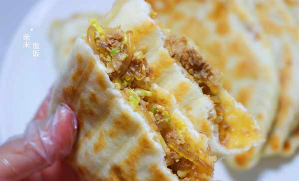 2,这个饼的面团是加了酵母的,但是没有等待醒发。所以它属于半发面,口感介于面和发面之间,柔软且筋道,很好吃。
