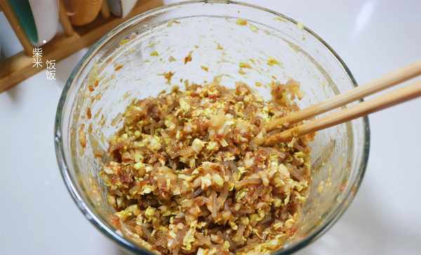 1,粉条吸水,所以这里的白菜就不用去水了,直接入馅就可以。