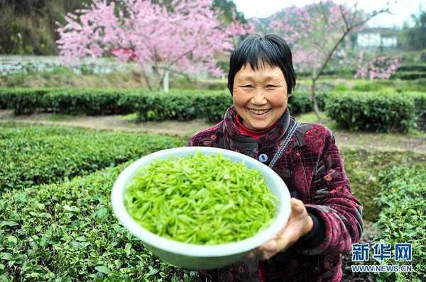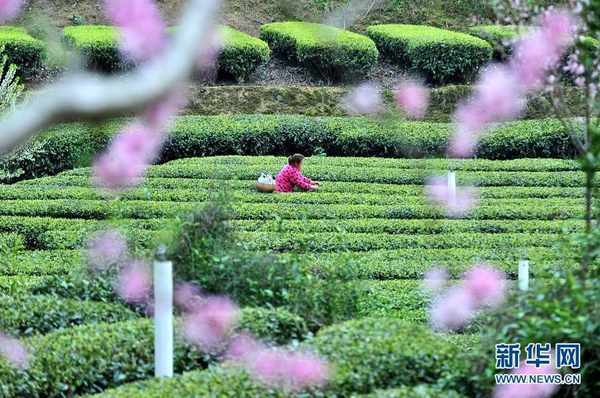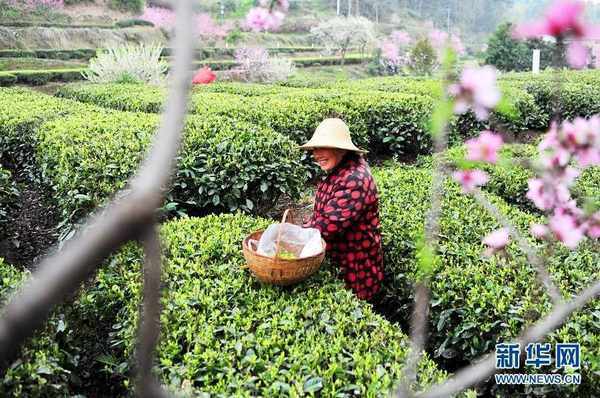 在宜昌市夷陵区太平溪镇,茶农们忙着采摘春茶供应市场。新华网发 张国荣摄