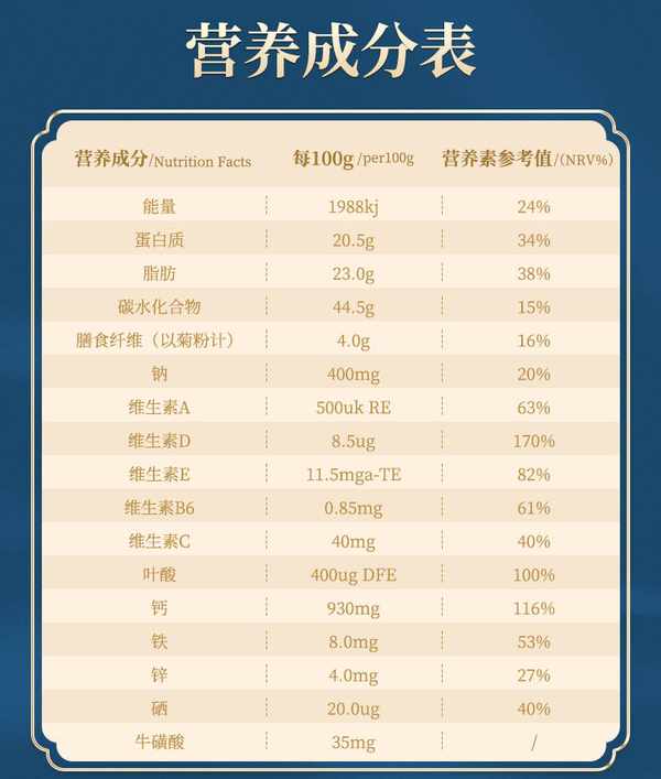 营养成分表反映了该款驼奶粉含有的营养成分多少,是驼奶粉营养价值的直接表现,同时也是不同人群选择驼奶的重要标准。正规驼奶粉营养丰富,含有多种微量元素,能更好滋养身体。
