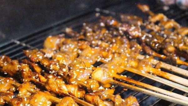 一个个用竹签串起来的猪眼睛,再涂上油、撒上各种调料,经过烤制就可以开吃了,吃过的人更是赞不绝口。