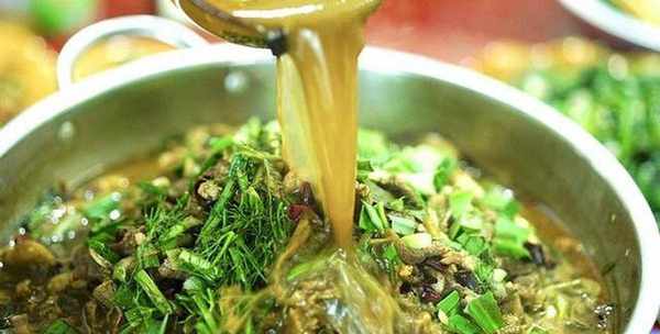 就和平常吃火锅时是一样的程序,不同点在于煮火锅的时候会飘来牛粪的气质,而且吃起来还微微泛苦,颜色也是绿色的,很多外地人看完直摇脑袋,表示难以下咽。