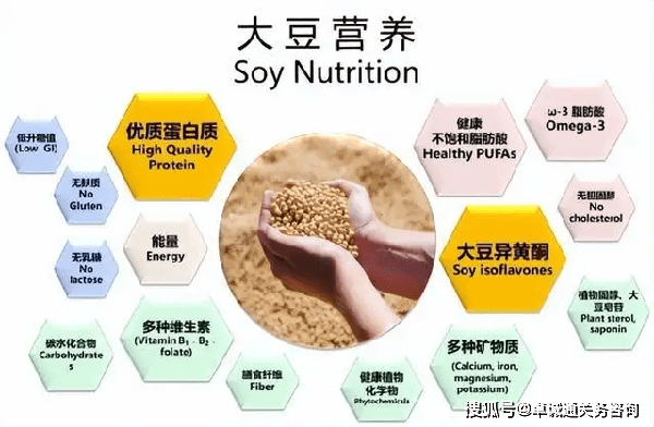 大豆中蛋白质含量35%左右,必需氨基酸的组成和比例与动物蛋白相似,而且富含其它谷物蛋白缺乏的赖氨酸;当大豆制品和谷类食物搭配食用,可以发挥蛋白质互补作用,显著提高蛋白质的营养价值,是与谷类蛋白互补的天然理想食品。