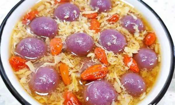 4、这道紫薯丸子鸡蛋羹,十分大补血,可以暖胃暖宫。经常手脚冰凉的人,或者贫血,气血不好的人,可以常吃这道汤,口感香甜软糯,一周吃两三次,补足气血,面色红润。