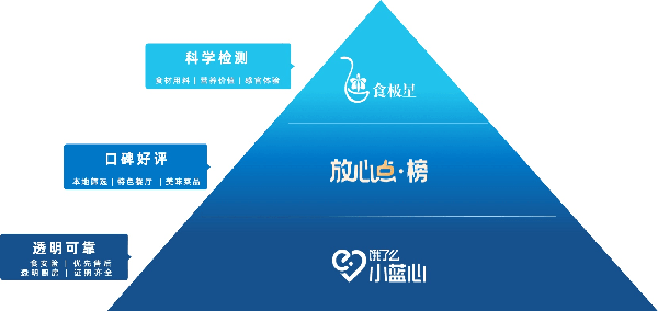引领食安建设透明可靠的“小蓝心”,呈现城市食客口碑好评的“放心点·榜”,以及体现权威机构科学检测的“食极星”认证,构建起了饿了么为消费者实现“放心点”的业务落实框架。