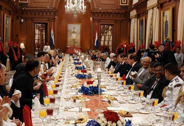在号称有数百万人参加的欢迎仪式后,素来无肉不欢的“大统领”,就遇到了一场极富印度特色的“全素”国宴。