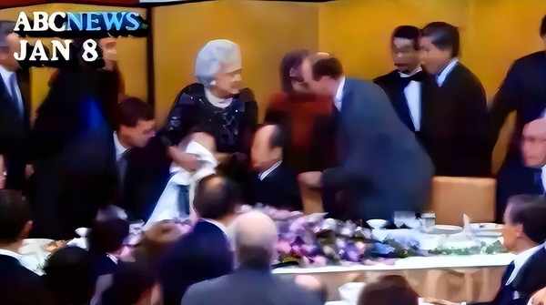 而且,老布什竟然一吐再吐,直接倒在了第一夫人芭芭拉的怀里,搞得整个国宴被紧急叫停,随从人员马上把老布什移到偏殿休息,日本那边更是被吓得慌了神。以至于后来在英语中还多了一个单词——布什吐(Bushemesis)。