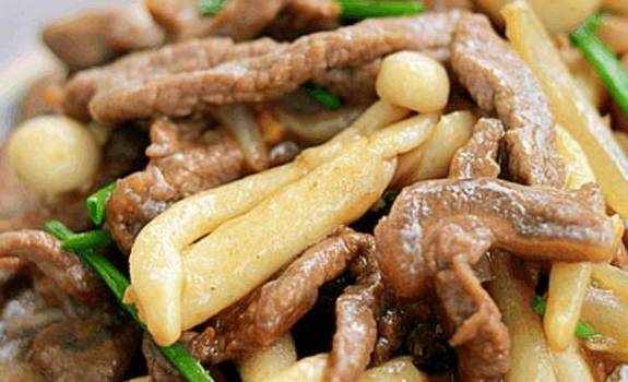 1、海鲜菇洗净,洋葱切丝,姜切末,葱切碎,牛里脊洗净切条,加入适量生抽、老抽、料酒、水淀粉、鸡精和盐抓匀上浆腌制10分钟备用;