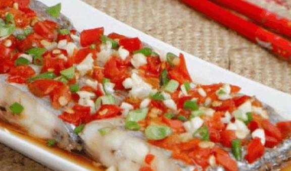 2、盘中摆入带鱼块撒上一层剁椒,放入蒸锅里隔水大火蒸10分钟取出,再撒上葱花,再浇上一大勺热油激香即可食用。